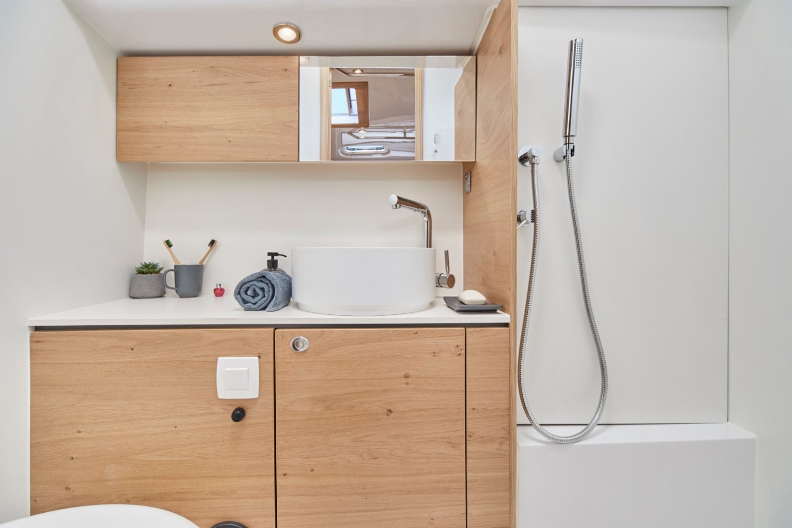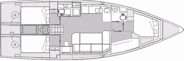 Fully maintained by our team, the Elan 43 Impression offers spacious and well-appointed cabins for restful nights, a bright and elegant saloon with panoramic windows, and a fully equipped galley for preparing meals onboard. Its intuitive layout and easy handling make it suitable for both experienced sailors and leisure cruisers.