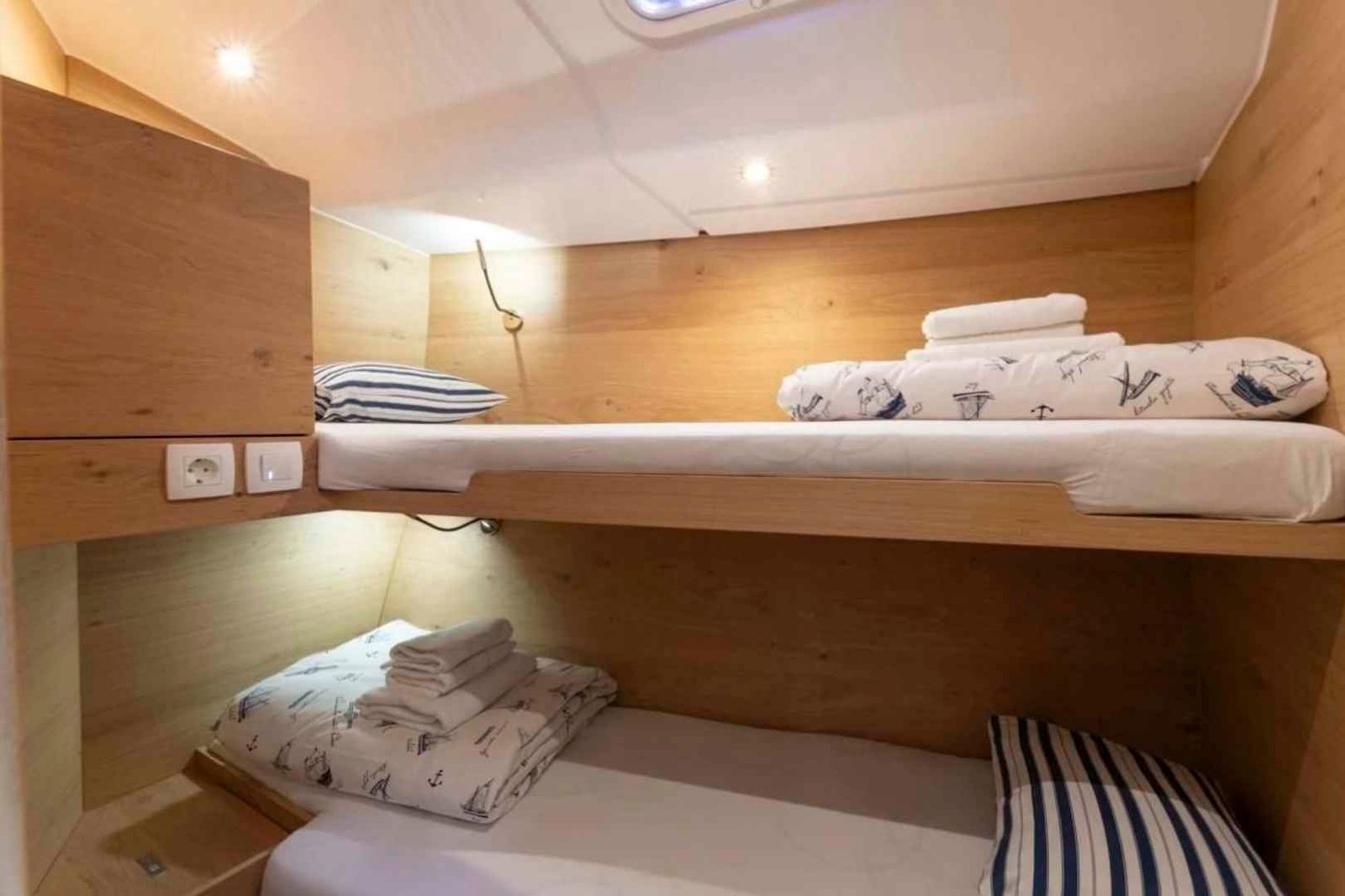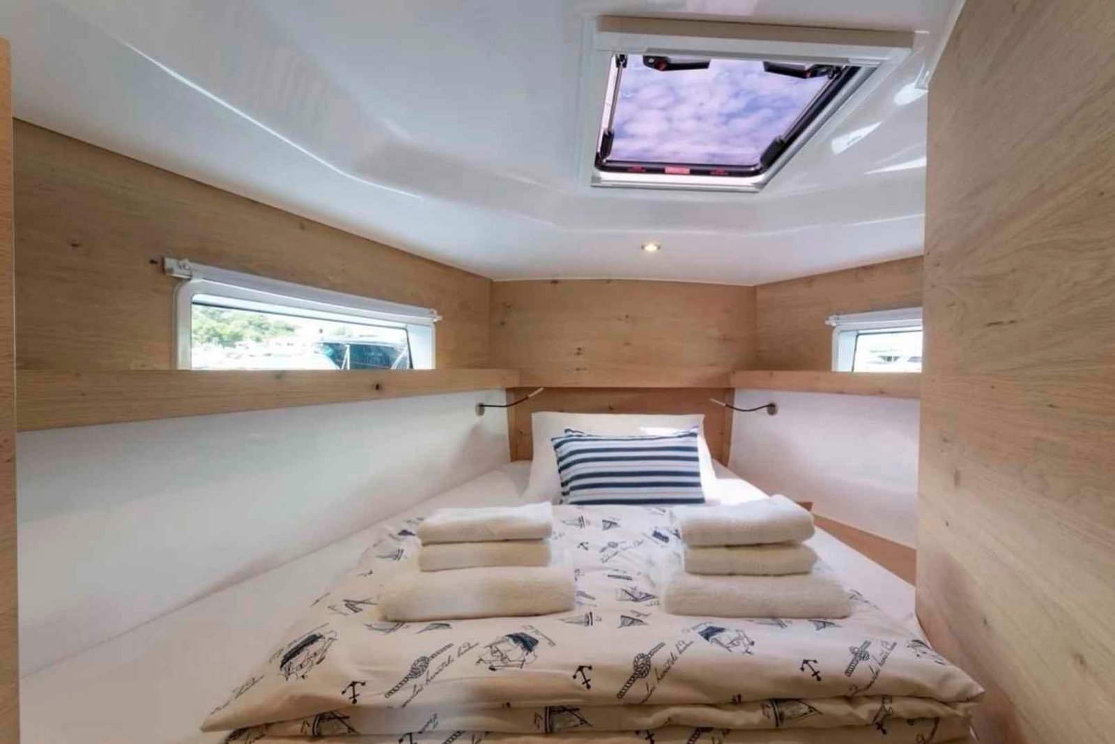 Fully maintained by our team, the Elan 43 Impression offers spacious and well-appointed cabins for restful nights, a bright and elegant saloon with panoramic windows, and a fully equipped galley for preparing meals onboard. Its intuitive layout and easy handling make it suitable for both experienced sailors and leisure cruisers.